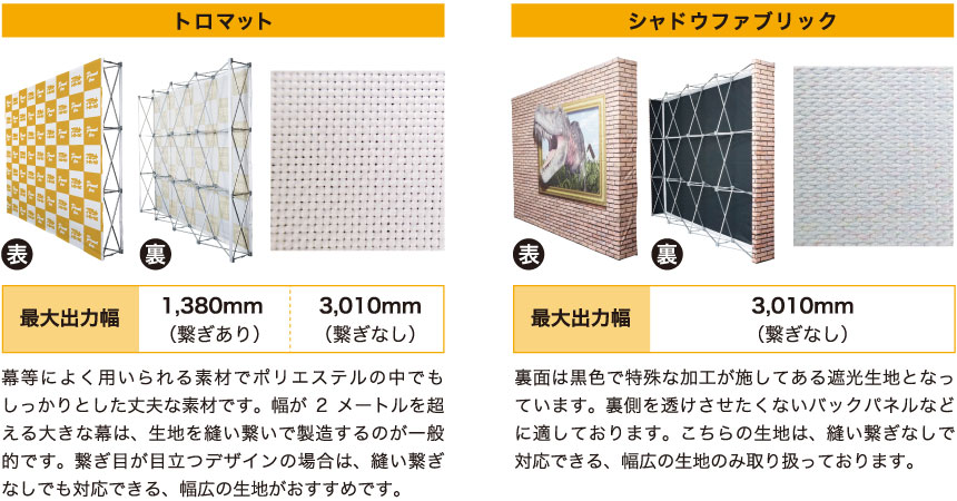 「繋ぎ合わせ」は、生地を上下に2枚繋ぎ合わせることで、一枚の大きなサイズの生地として使用します。